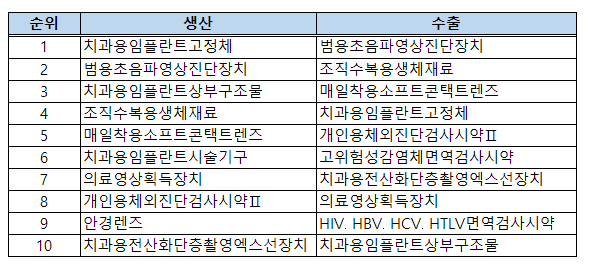 | »ý»ê »óÀ§ 10´ë ǰ¸ñ Áß ¼öÃâ »óÀ§ 10´ë ǰ¸ñ ÇöȲ(Á¦°ø: ½ÄǰÀǾàǰ¾ÈÀüó) |