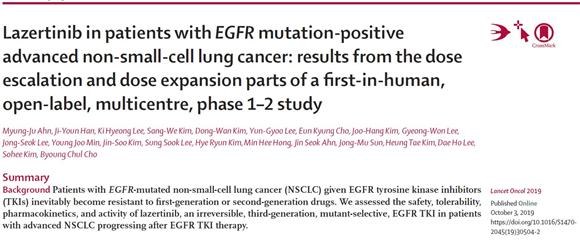 ¿¬±¸ °á°ú¿¡ µû¸£¸é, ¾ÏÀÇ Å©±â°¡ 30% ÀÌ»ó °¨¼ÒÇØ °´°üÀû ¹ÝÀÀÀ» º¸ÀΠȯÀÚÀÇ ºñÀ²(ORR)Àº ±âÁ¸ Ç×¾ÏÁ¦¿¡ ÀúÇ×¼ºÀ» ³ªÅ¸³»´Â T790M µ¹¿¬º¯ÀÌ ¾ç¼ºÀÇ ¸ðµç ȯÀÚ¿¡¼ 57%À̾ú°í, ±× Áß 120mg ÀÌ»óÀÇ ¿ë·®À» Åõ¿©ÇÑ È¯ÀÚ¿¡¼´Â 60%±îÁö ³ô¾ÆÁ³À¸¸ç, ¿ÏÀü °üÇØ¿¡ À̸¥ ȯÀÚµµ 3¸íÀ̳ª µÆ´Ù.