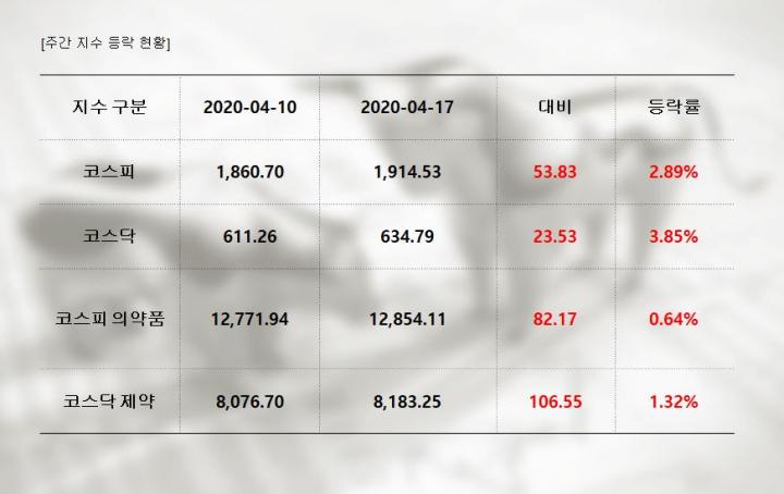 Áö³ÁÖ(13~17ÀÏ) Áõ½Ã°¡ Àü¹ÝÀûÀ¸·Î »ó½ÂÇÑ °¡¿îµ¥ ÄÚ½ºÇÇÁö¼ö¿Í ÄÚ½º´ÚÁö¼ö°¡ °¢°¢ 53.83p(2.89%¡è), 23.53p(3.85%¡è) ¿À¸¥ °ÍÀ¸·Î Áý°èµÆ´Ù.