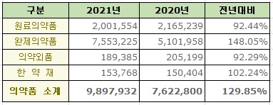 Äڷγª19 ¹é½Å ¿µÇâÀ¸·Î ÀÛ³â ÀǾàǰ ¼öÀÔÀÌ Àü³â´ëºñ ¹«·Á 30%³ª ÆøµîÇß´Ù.