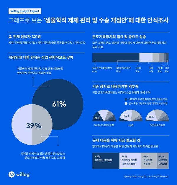 À̹ø ¼³¹®Á¶»ç´Â ¡®»ý¹°ÇÐÀû Á¦Á¦ ±ÔÁ¦¡¯ °³Á¤¾È¿¡ ´ëÇÑ ¾÷°èÀÇ Àνİú ÀǰßÀ» È®ÀÎÇϱâ À§ÇØ Àª·Î±×°¡ Áö³ 2¿ù Á¦¾à¾÷°è Á¾»çÀÚ 321¸íÀ» ´ë»óÀ¸·Î ½Ç½ÃÇßÀ¸¸ç ¡ã¡®»ý¹°ÇÐÀû Á¦Á¦ ±ÔÁ¦¡¯ °³Á¤¾È ÀÎÁö À¯¹« ¡ãÁ¦¾àÁ¦Á¶»ç ¹× ¹°·ù¡¤À¯Åë»ç°¡ Áغñ ÁßÀÎ ´ëÀÀÃ¥ µî¿¡ ´ëÇÑ Áú¹®À» Áß½ÉÀ¸·Î ÁøÇàµÆ´Ù.