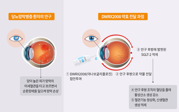 ´ë¿õÅ×¶óǻƽ½º°¡ °è¿ ³» ÃÖÃÊ ½Å¾à(First-in-class)À¸·Î °³¹ß ÁßÀÎ DWRX2008Àº ¸Á¸· ¹× ¾È±¸ ÈĹæÁ¶Á÷¿¡¼ ¹ß»ýÇÏ´Â ´ç´¢º´¼º ¾È°úÁúȯ¿¡ ´ëÇÑ ±Ùº»ÀûÀÎ ¿øÀÎÀÎ ¡®¾È±¸ Ç÷´ç¡¯ °ü¸®°¡ °¡´ÉÇÑ °ÍÀÌ Æ¯Â¡ÀÌ´Ù.