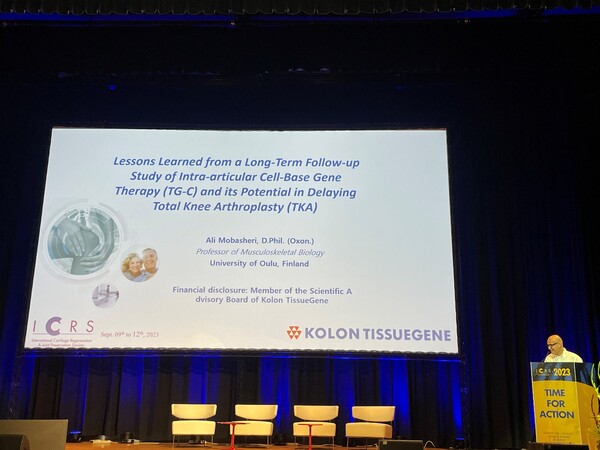 ÄÚ¿À·ÕƼ½´ÁøÀº TG-CÀÇ ÀÓ»ó 2»ó ½ÃÇè °á°ú¸¦ Åä´ë·Î ¹«¸­Àΰø°üÀý¼ö¼ú(TKA) Áö¿¬ °¡´É¼º¿¡ ´ëÇÑ ¿¬±¸¿Í ÇÔ²² ÅðÇ༺ ôÃßµð½ºÅ©Áúȯ(DDD)ÀÇ µ¿¹°½ÇÇè °á°ú¸¦ Ãß°¡·Î °ø°³Çß´Ù.