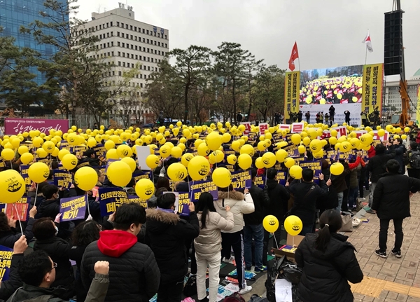 Ãä°í ºñ°¡ È𳯸®´Â »óȲ¿¡¼­µµ 1,300¿©¸íÀÇ º¸°ÇÀÇ·á³ëµ¿ÀÚµéÀº ¡®º¸°ÇÀÇ·áÀη¹ý Á¦Á¤¡¯, ¡®ÀÇ·á¹Î¿µÈ­¹ý ³ëµ¿Æ¯·Ê ÆóÁö¡¯ µîÀÌ ÀûÈù ÇÇÄϰú ³ë¶õ dz¼±À» ¼Õ¿¡ µé°í ½ÃÀ§¿¡ ³ª¼¹´Ù.