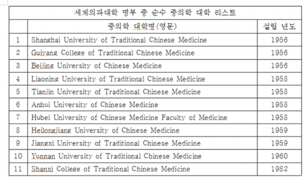 Çѱ¹ÀÇ ÇÑÀÇ´ë¿¡ À̾î Áß±¹ÀÇ 11°³ ÁßÀÇ´ëµµ '¼¼°èÀÇÇб³À°Çùȸ(WFME)' '¼¼°èÀÇÇдëÇиíºÎ(WDMS)'¿¡¼ 11ÀÏ »èÁ¦µÆ´Ù. ÇÑÀÇ´ë´Â ÀÌ¹Ì 2012³â WDMS¿¡¼ »èÁ¦µÆ´Ù.
