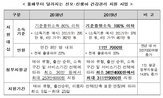 º¸°Çº¹ÁöºÎ(Àå°ü ¹Ú´ÉÈÄ)´Â Ãâ»ê ÈÄ »ê¸ðÀÇ »êÈÄ È¸º¹°ú ½Å»ý¾Æ ¾çÀ°Áö¿øÀ» À§ÇØ ¿ÃÇØºÎÅÍ »ê¸ð¡¤½Å»ý¾Æ °Ç°°ü¸® ¼ºñ½ºÀÇ Áö¿ø ´ë»óÀ» Á¾Àüº¸´Ù È®´ëÇÑ´Ù°í ¹ßÇ¥Çß´Ù.