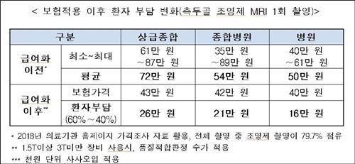 ¾È¸é µî µÎ°æºÎ MRI 5¿ùºÎÅÍ °Çº¸ Àû¿ëÀ¸·Î º»Àκδã 1/3 °æ°¨