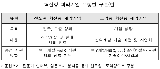 ¿¬±¸¸¦ ¸ÃÀº ¼º±Õ°ü´ë ÀÌ»ó¿ø ±³¼ö ¿¬±¸ÆÀÀº Á¦¾à±â¾÷ ´ë»ó ¼³¹®Á¶»ç µîÀ» Åä´ë·Î ºÐ¼®ÇÑ °á°ú, Çõ½ÅÇü Á¦¾à±â¾÷ ÀÎÁõÀ» 2°³ À¯ÇüÀ¸·Î ±¸ºÐÇÏ´Â ¹æ¾ÈÀ» Á¦¾ÈÇß´Ù. ÀÌ¿¡ º¹ÁöºÎ´Â ±¸Ã¼ÀûÀÎ ÀÎÁõ±âÁØ ¹× Æò°¡¹æ½Ä µîÀ» Áö¼ÓÀûÀ¸·Î °ËÅäÇϱâ·Î Çß´Ù.