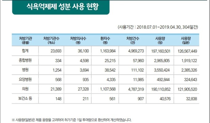 ![]() À̿ܿ¡µµ °°Àº ±â°£ ½Ä¿å¾ïÁ¦Á¦¸¦ Æ÷ÇÔ ÀÇ·á¿ë ¸¶¾à·ù¸¦ ó¹æ ¹ÞÀº ȯÀÚ´Â 1597¸¸¸íÀ¸·Î, ±¹¹Î 3¸í Áß 1¸í ²Ã¿¡ ÇØ´çÇß´Ù.