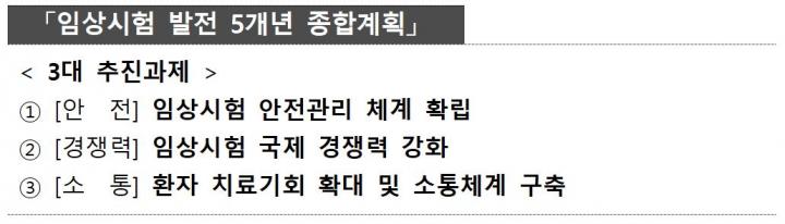 À̹ø °èȹ¿¡¼´Â ¡®ÀÓ»ó½ÃÇè ±Û·Î¹ú °æÀï·Â °È·Î ȯÀÚ Á᫐ ½Å¾à°³¹ß °±¹ ½ÇÇö¡¯À» ¸ñÇ¥·Î ½Ä¾àó°¡ ±¸»óÇϰí ÀÖ´Â ¡ãÀÓ»ó½ÃÇè Âü¿©ÀÚÀÇ ¾ÈÀü°ü¸® ¡ã¼¼°èÃÖ°í ¼öÁØÀÇ ÀÓ»ó½ÃÇè ÀÎÇÁ¶ó±¸Ãà ¡ãȯÀÚ Ä¡·á±âȸ È®´ë¸¦ ÅëÇÑ »çȸ¾ÈÀü¸Á È®Ãæ µî 3´ë ÃßÁøÀü·«ÀÌ ·Îµå¸ÊÀ¸·Î Á¦½ÃµÆ´Ù.