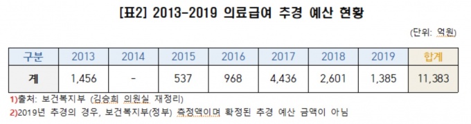 1385¾ï¿øÀÇ Ãß°æ ¿¹»ê Áß ÀÇ·á±Þ¿© ¹ÌÁö±Þ±Ý ¹®Á¦ ÇØ°áÀ» À§ÇØ ÅõÀÔµÈ ±Ý¾×Àº 533¾ï¿ø(38%)À̾ú´Ù.
