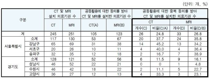 °¨»ç¿øÀÌ °øµ¿È°¿ë¿¡ ´ëÇÑ µ¿ÀǸ¦ ¹Þ¾Æ CT ¹× MRI¸¦ ¼³Ä¡ÇÑ ¼¿ï°ú °æ±âµµ ¼ÒÀç ÀÇ·á±â°üÀ» Á¡°ËÇÑ °á°ú Áߺ¹ µ¿Àǰ¡ ½É°¢ÇÑ ¼öÁØÀÎ °ÍÀ¸·Î µå·¯³µ´Ù.