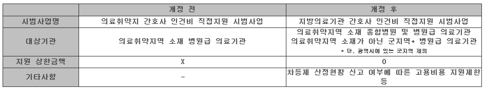 ÁöħÀÌ °³Á¤µÊ¿¡ µû¶ó ±âÁ¸ ÀÇ·áÃë¾àÁö¿ª ¼ÒÀç Á¾ÇÕº´¿ø ¹× º´¿ø ±Þ ÀÇ·á±â°ü¿¡¼­¸¸ Áö¿ø ¹Þ´ø °£È£»ç ÀΰǺñ´Â ¾ÕÀ¸·Î ±º Áö¿ª º´¿ø±Þ ÀÇ·á±â°ü¿¡¼­µµ Áö¿ø ¹ÞÀ» ¼ö ÀÖ°Ô µÆ´Ù. ´Ü, ±¤¿ª½Ã¿¡ ÀÖ´Â ±º Áö¿ªÀº Á¦¿ÜµÆ´Ù.