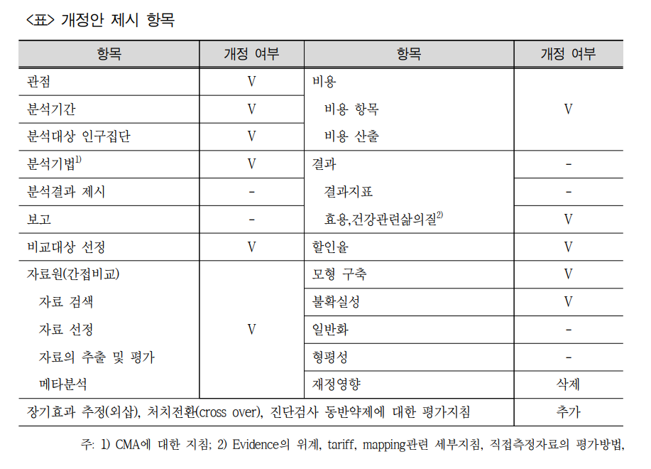 °³Á¤ÀÌ ¿ä±¸µÇ´Â Ç׸ñÀº ÀÚ·á¿øÀ» ºñ·ÔÇØ ºÐ¼®±â°£¡¤´ë»ó¡¤±â¹ý¡¤ÇÒÀÎÀ² µîÀ̸ç ÀçÁ¤¿µÇâ Ç׸ñÀº »èÁ¦, ±×¿Ü Àå±âÈ¿°ú ÃßÁ¤¡¤Ã³Ä¡Àüȯ¡¤Áø´Ü°Ë»ç µ¿¹Ý¾àÁ¦¿¡ ´ëÇÑ Æò°¡Áöħ µîÀÌ Ãß°¡µÆ´Ù.