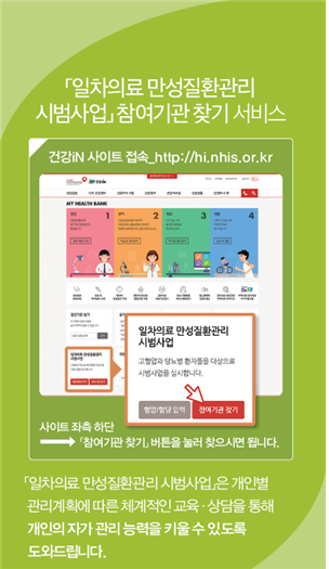 ![]() ÀÏÂ÷ÀÇ·á ¸¸¼ºÁúȯ°ü¸® ½Ã¹ü»ç¾÷Àº °íÇ÷¾Ð°ú ´ç´¢º´À» È¿°úÀûÀ¸·Î °ü¸®Çϱâ À§ÇØ µ¿³×ÀÇ¿øÀÌ 1³â ´ÜÀ§ Æ÷°ýÀû °ü¸®°èȹÀ» ¼ö¸³Çϰí, Áö¼ÓÀûÀÎ Áúȯ»ó´ã°ú ¿µ¾ç¡¤½ÅüȰµ¿ µî »ýȰ½À°üÀ» °³¼±Åä·Ï ¼ºñ½º¸¦ Á¦°øÇÏ´Â ÇÁ·Î±×·¥ÀÌ´Ù.