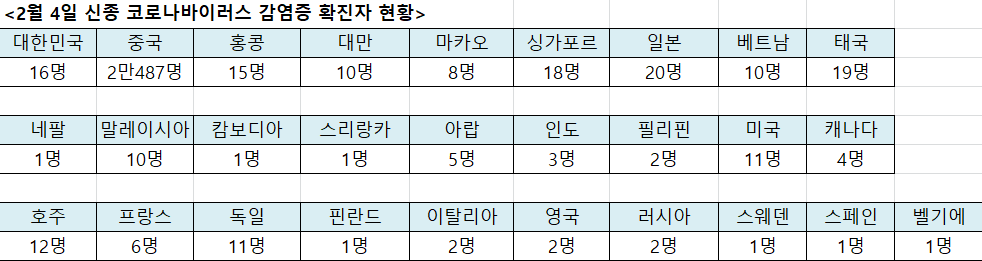 Áß±¹Àº ½ÅÁ¾ Äڷγª¹ÙÀÌ·¯½º °¨¿°Áõ È®»êÁöÀÎ Èĺ£À̼º(Hubei) ¿ìÇÑÀ» ºñ·ÔÇØ ÀúÀ强(Zhejiang), ±¤µÕ¼º(Guangdong), Çã³¼º(henan) µî¿¡¼ È®ÁøÀÚ 2¸¸487¸í°ú »ç¸ÁÀÚ 425¸íÀÌ ¹ß»ýÇß´Ù.