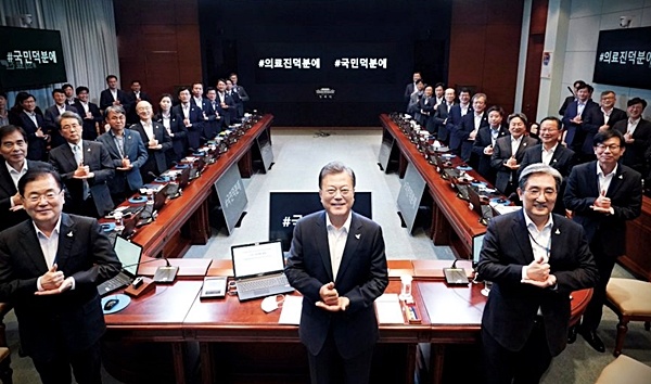 ¹® ´ëÅë·ÉÀº 27ÀÏ ¿ÀÈÄ Ã»¿Í´ë¿¡¼ ¼ö¼®¡¤º¸Á°üȸÀÇ¿¡ ¾Õ¼ ³ë¿µ¹Î ´ëÅë·É ºñ¼½ÇÀå µî û¿Í´ë Âü¸ðµé°ú ¡®´öºÐ¿¡ 縰Áö¡¯¸¦ ÇÔ²² Çß´Ù. 'ÀÇ·áÁø ´öºÐ¿¡' Äڷγª19 À§±â¸¦ ±Øº¹ÇØ ³ª°¡°í ÀÖ´Ù´Â ¶æÀ» ´ã¾Æ '´öºÐ¿¡ 縰Áö'·Î ¸í¸íµÈ ÇØ´ç Ä·ÆäÀÎÀº ÀνºÅ¸±×·¥ µî »çȸ°ü°è¸Á¼ºñ½º(SNS)¿¡ ¡®Á¸°æ¡¯°ú ¡®Àںνɡ¯À» ¶æÇÏ´Â ¼ö¾î µ¿ÀÛÀ» ¿Ã·Á ±¹¹Î ´©±¸³ª µ¿ÂüÇÒ ¼ö ÀÖ´Ù. ¹® ´ëÅë·ÉÀº ¼ö¼®¡¤º¸Á°üȸÀÇ¿¡ ¾Õ¼ ¸¶½ºÅ©¸¦ ¹þ°í Áߴ뺻ÀÌ Á¦ÀÛÇÑ ¡®´öºÐ¿¡ ¹èÁö¡¯¸¦ ¿Ê±ê¿¡ ´Þ°í ¼ö¾î¿Í ÇÔ²² ¡°ÀÇ·áÁø ´öºÐ¿¡! ±¹¹Î ´öºÐ¿¡!¡±¸¦ ¿ÜÃÆ´Ù. ÀÌ¾î ±×´Â SNS¿¡ ¡°ÀÇ·áÁø ¿©·¯ºÐÀÇ Çå½Å¿¡ Á¸°æ°ú °¨»ç¸¦ Ç¥ÇÑ´Ù¡±°í °Ô½ÃÇß´Ù. ¹® ´ëÅë·ÉÀº ¡°ÀÇ·áÁø ´öºÐ¿¡ ¼ÒÁßÇÑ »ý¸íÀÌ ÁöÄÑÁö°í, ¹ÙÀÌ·¯½º¿ÍÀÇ ½Î¿ò¿¡¼ ½Â¸®Çϰí ÀÖ´Ù¡±¸é¼ ¡°ÀÇ·áÁø ´öºÐ¿¡ ¹æ¿ª ¸ð¹ü±¹°¡¶ó´Â ¼¼°èÀÇ Æò°¡°¡ °¡´ÉÇß°í, ¼¼È÷ ÀÏ»óÀ» ÁغñÇÏ°Ô µÆ´Ù¡±´Â ¸Þ½ÃÁö¸¦ ÀüÇß´Ù. '´öºÐ¿¡ 縰Áö'¸¦ À̾ Âü¿©ÀÚ 3¸íÀ» Áö¸ñÇÏ´Â ±ÔÄ¢¿¡ µû¶ó ¹® ´ëÅë·ÉÀº ¾Æ±â»ó¾î¡¤¹è±¸¼±¼ö ±è¿¬°æ¡¤±Çµ¿È£ Áúº´°ü¸®º»ºÎ ¼ö¾îÅ뿪»ç¸¦ ´ÙÀ½ Âü¿©ÀÚ·Î ²Å¾Ò´Ù. ¹® ´ëÅë·ÉÀº Áö³ 24ÀÏ ¡®´öºÐ¿¡ 縰Áö¡¯¿¡ Âü¿©ÇÑ Áúº´°ü¸®º»ºÎ Á߾ӹ濪´ëÃ¥º»ºÎ·ÎºÎÅÍ »Ç·Î·Î, º¸°Çº¹ÁöºÎ ÃâÀÔ±âÀڴܰú ÇÔ²² ´ÙÀ½ Âü¿©ÀÚ·Î Áö¸ñ¹Þ¾Ò´Ù. |