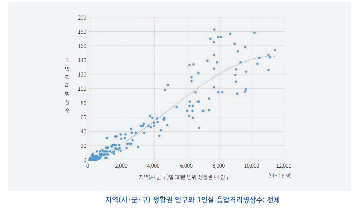 ![]() Â÷·®À¸·Î À̵¿ °¡´ÉÇÑ ¹üÀ§(15ºÐ/30ºÐ/60ºÐ/90ºÐ)·Î »ýȰ±ÇÀ» ±¸ºÐÇØ ºÐ¼®ÇÑ °á°ú, 15ºÐ ¹üÀ§ »ýȰ±Ç ³»¿¡¼´Â Àα¸°¡ ÀûÀº °æ¿ì À½¾Ð°Ý¸®º´»óÀÌ ¾ø´Â Áö¿ªµµ ÀÖ¾úÀ¸³ª »ýȰ±ÇÀ» È®ÀåÇÒ °æ¿ì Àα¸ 10¸¸¸í ´ç 1ÀÎ½Ç À½¾Ð°Ý¸®º´»ó¼ö´Â ´ë·« 1.2°³¿¡ ¼ö·ÅÇϰí ÀÖ´Â °ÍÀ¸·Î ³ªÅ¸³µ´Ù.