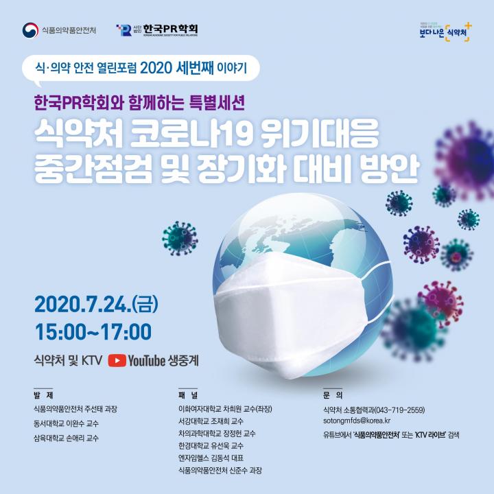ÁÖ¿ä ³»¿ëÀº ¡â½Ä¾àó Äڷγª19 À§±â´ëÀÀ ¹× Àå±âÈ­ ´ëºñ ¹æ¾È(½Ä¾àó ¼ÒºñÀÚÀ§ÇØ¿¹¹æÁ¤Ã¥°ú ÁÖ¼±Å °úÀå) ¡âÄڷγª19 ¡®ÀÎÆ÷µ¥¹Í½º¡¯ Çö»ó¿¡ ´ëÇÑ ÀÌ·ÐÀû °íÂû(µ¿¼­´ë À̿ϼö ±³¼ö) ¡âÄڷγª19 »óȲ¿¡¼­ÀÇ ¸¶½ºÅ© »ç¿ë¿¡ ´ëÇÑ Á¤ºÎ Ä¿¹Â´ÏÄÉÀ̼ÇÀÇ ¿ªÇÒ(»ïÀ°´ë ¼Õ¾Ö¸® ±³¼ö) ¹× ÆÐ³ÎÅä·Ð µîÀÌ´Ù.