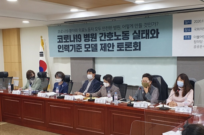 ´õºÒ¾î¹ÎÁÖ´ç ³²Àμø ÀÇ¿ø°ú °ø°ø¿î¼ö³ëÁ¶ ÀǷῬ´ëº»ºÎ µîÀÌ Áö³­ 2ÀÏ ±¹È¸ÀÇ¿øÈ¸°ü Á¦8°£´ãȸ½Ç¿¡¼­ ¡®Äڷγª19 º´¿ø °£È£³ëµ¿ ½ÇÅÂ¿Í Àη±âÁØ ¸ðµ¨ Á¦¾È Åä·Ðȸ¡¯¸¦ °øµ¿°³ÃÖÇß´Ù.