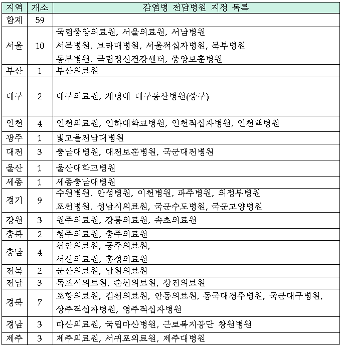 Á¤ºÎ°¡ Äڷγª19 ´ëÀÀÀ» À§ÇÑ ÁöÁ¤¡¤¿î¿µÁßÀΠ°¨¿°º´Àü´ãº´¿øÀÌ Àü±¹ 59°÷À¸·Î È®ÀεƴÙ.