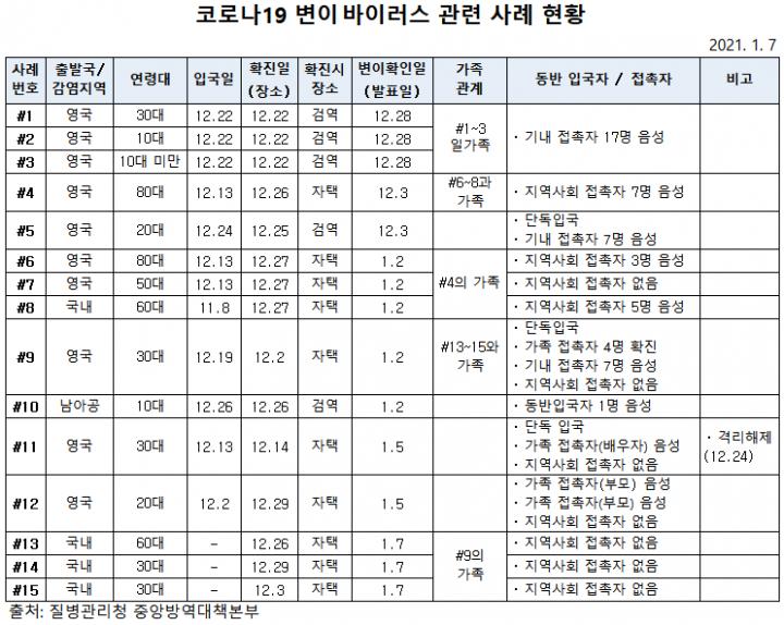 8ÀÏ Áúº´°ü¸®º»ºÎ Á߾ӹ濪´ëÃ¥º»ºÎ¿¡ µû¸£¸é, Äڷγª19 º¯ÀÌ ¹ÙÀÌ·¯½º È¯Àڴ ¿µ±¹¹ß º¯ÀÌÁÖ(GR) ¹ÙÀÌ·¯½º È®ÁøÀÚ 14¸í, ³²¾ÆÇÁ¸®Ä«°øÈ­±¹¹ß º¯ÀÌÁÖ(GH) ¹ÙÀÌ·¯½º È®ÁøÀÚ 1¸íÀ¸·Î ÃÑ 15¸íÀ̾ú´Ù.
