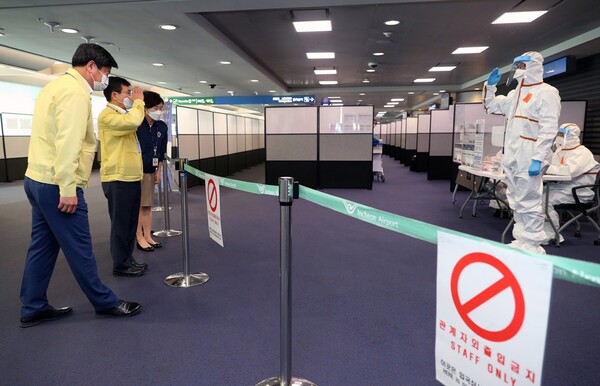 Á¤ºÎ´Â Äڷγª19 ÇØ¿Ü °¨¿°¿äÀÎÀÌ ±¹³»·Î À¯ÀԵǴ °ÍÀ» ¹æÁöÇϱâ À§ÇØ, ±¹Á¦¼± Ç׷θ¦ ÀÎõ±¹Á¦°øÇ×À¸·Î ÀÏ¿øÈ­ÇÏ°í Æ¯º°ÀÔ±¹ÀýÂ÷¸¦ µµÀÔÇØ ÀÔ±¹ÀÚ¿¡ ´ëÇÑ °Ë¿ªÀ» °­È­ÇÏ´Â ÇÑÆí, ¸ðµç ÀÔ±¹ÀÚ¿¡ ´ëÇØ 14Àϰ£ÀÇ ÀÚ°¡ ¶Ç´Â ½Ã¼³ °Ý¸®¸¦ ÅëÇØ ±×°£ ÇØ¿ÜÀÔ±¹ÀÚ¸¦ ¾ÈÁ¤ÀûÀ¸·Î °ü¸®ÇØ ¿Ô´Ù.