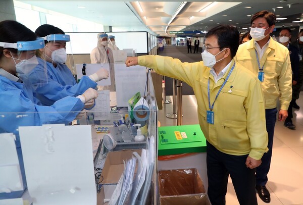 ±Ç´öö Àå°üÀº ÀÎõ°øÇ× °Ë¿ª¼Ò ¹× ±º‧°æÂû‧¼Ò¹æ‧ÃâÀÔ±¹‧ÀÎõ±¹Á¦°øÇ×°ø»ç °ü°èÀÚ µî°úÀÇ °£´ãȸ¸¦ ÅëÇØ ±×°£ Äڷγª19 ÇØ¿ÜÀÔ±¹ ¹æ¿ª ´ëÀÀ¿¡ µû¸¥ ³ë°í¿¡ ±íÀº °¨»ç¸¦ Ç¥Çϰí, °¢ ±â°üÀÇ °Ë¿ª ¹× ¹æ¿ª°ü¸® ¿î¿µ»ó ¾î·Á¿î Á¡ µîÀ» ûÃëÇß´Ù.