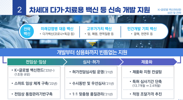 ¶ÇÇÑ ¹é½Å °³¹ß¡¤»ý»êÀ» À§ÇÑ Çٽɱâ¼úÀ» ±¹°¡Àü·«±â¼ú·Î ¼±Á¤ÇØ ¼¼Á¦ ÇýÅÃÀ» °­È­Çϰí mRNA µî Â÷¼¼´ë ¹é½Å Ç÷§Æû »ý»ê±â¹Ý ±¸Ãà ¹× ¾ç»ê‧ǰÁú°ü¸® Áö¿øÀ» È®´ëÇÑ´Ù.