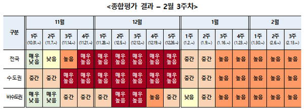 Á߾ӹ濪´ëÃ¥º»ºÎ°¡ 2¿ù 3ÁÖÂ÷(2¿ù 13~19ÀÏ) ÁÖ°£ À§Çèµµ Æò°¡¸¦ ½Ç½ÃÇÑ °á°ú Àü±¹, ¼öµµ±Ç, ºñ¼öµµ±Ç ¸ðµÎ ¡®³ôÀ½¡¯ ´Ü°è·Î Æò°¡Çß´Ù.