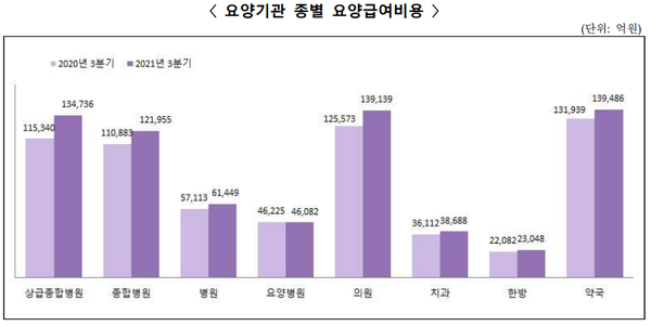 °Ç°º¸Çè½É»çÆò°¡¿øÀÌ ÃÖ±Ù °ø°³ÇÑ ¡®2021³â 3ºÐ±â Áø·áºñÅë°èÁöÇ¥(Áø·áÀÏ ±âÁØ)¡¯¿¡¼´Â À̰°Àº Áø·á½ÇÀûµéÀÌ È®ÀεƴÙ.