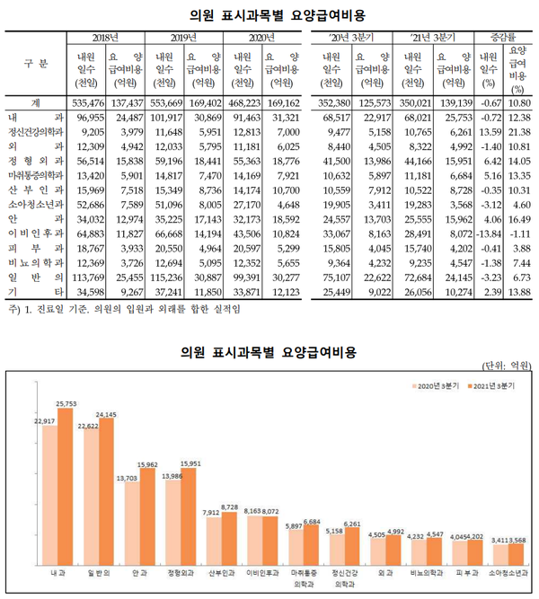 ÀÇ¿ø Ç¥½Ã°ú¸ñº° Áø·áºñ¸¦ º¸¸é, Á¤½Å°Ç°ÀÇÇаú°¡ °¡Àå Å« ÆøÀ¸·Î Áø·áºñ°¡ Áõ°¡ÇÑ °ÍÀ¸·Î ³ªÅ¸³µ´Ù.