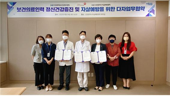 ±¹¹Î°Ç°º¸Çè°ø´ÜÀÌ ÀÎõ±¤¿ª½ÃÀڻ쿹¹æ¼¾ÅÍ, ÀÎõ±¤¿ªÁ¤½Å°Ç°º¹Áö¼¾ÅÍ¿Í Áö³ 28ÀÏ ÀÚ»ìÃæµ¿ µî °íÀ§Ç豺 º¸°ÇÀÇ·á ÀηÂÀÇ Á¤½Å°Ç° °ü¸® ¾ÈÀü¸Á ±¸ÃàÀ» À§ÇÑ ¾÷¹«Çù¾à(MOU)À» ü°áÇß´Ù.