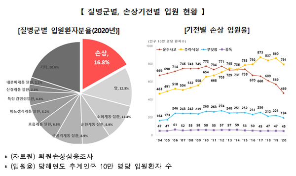 ¿î¼ö»ç°í¿¡ ÀÇÇÑ ¼Õ»óÀÔ¿øÀ²Àº 2015³â ÀÌÈÄ Áö¼Ó °¨¼ÒÇϰí ÀÖÀ¸¸ç, 2019³â°ú 2020³â »çÀÌ Àα¸ 10¸¸¸í´ç 100¸í°¡·® °¨¼Ò(569¸í¡æ469¸í)Çß´Ù.