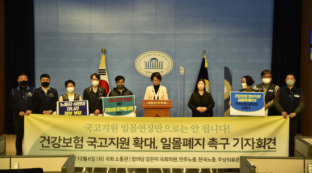 Á¤ÀÇ´ç °Àº¹Ì ÀÇ¿ø°ú ÀÇ·á¹Î¿µÈ ÀúÁö¿Í ¹«»óÀÇ·á½ÇÇöÀ» À§ÇÑ ¿îµ¿º»ºÎ, Çѱ¹³ëµ¿Á¶ÇÕÃÑ¿¬¸Í, Àü±¹¹ÎÁֳ뵿Á¶ÇÕÃÑ¿¬¸Í, ±¹¹Î°Ç°º¸Çè³ëµ¿Á¶ÇÕÀº 6ÀÏ ¿ÀÀü ±¹È¸ ¼ÒÅë°ü¿¡¼ ±âÀÚȸ°ßÀ» ¿°í "±¹°íÁö¿ø Àϸô ¿¬À常À¸·Î´Â ¾ÈµÈ´Ù"°í ÁöÀûÇß´Ù.