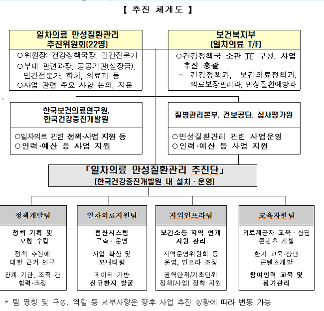 º¹ÁöºÎ¿Í 5°³ °ü°è±â°üÀÇ Âü¿©ÇÏ¿¡ °øµ¿À¸·Î ¼³Ä¡Çϴ ÃßÁø´ÜÀº ´ç¸éÇÑ °í·ÉÈ­¿Í ¸¸¼ºÁúȯ ¹®Á¦¿¡ ´ëÀÀÇϱâ À§ÇÑ ÀÇ·áü°è Çõ½Å °úÁ¦·Î¼­ ¡®ÀÏÂ÷ÀǷḦ Áß½ÉÀ¸·Î Çϴ Áö¿ª¿¬°èÇü ¸¸¼ºÁúȯ ¿¹¹æ°ü¸®Ã¼°è ±¸Ã࡯»ç¾÷À» ÃßÁøÇÑ´Ù.