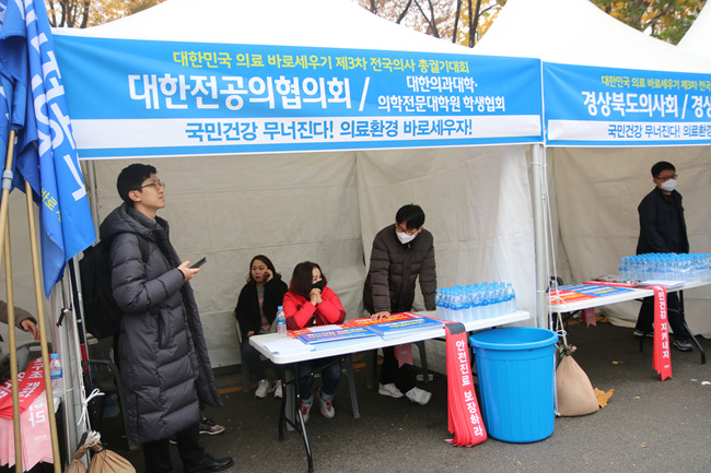 [¸Þµð°ÔÀÌÆ®´º½º ÀÓ¼Ö ±âÀÚ] ´ëÇÑÀÇ»çÇùȸ´Â 11ÀÏ ¼¿ï ´ö¼ö±Ã ´ëÇѹ® ¾Õ¿¡¼ '´ëÇѹα¹ ÀÇ·á ¹Ù·Î¼¼¿ì±â Á¦3Â÷ Àü±¹ÀÇ»ç Ãѱȱâ´ëȸ'¸¦ ÁøÇàÇß´Ù. ÀÇ»çµéÀÇ ±È±â´ëȸ¿¡ ´ëÇÑ ºÎÁ¤ÀûÀÎ ±¹¹Î ¿©·ÐÀº ³Ñ¾î¾ß ÇÒ °úÁ¦Áö¸¸, Áغñ±â°£ÀÌ 2ÁÖ Á¤µµ·Î ª¾Ò´ø µ¥ ºñÇØ ÀÇÇù Ãß»ê 1¸¸2000¸í(°æÂûÃß»ê 5000¸í)ÀÇ Àǻ簡 Âü¼®ÇÏ¸é¼ ¹«»çÈ÷ ³¡³µ´Ù.