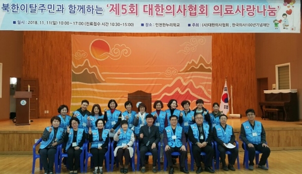 ´ëÇÑÀÇ»çÇùȸ¿Í Çѱ¹ÀÇ»ç100³â±â³äÀç´ÜÀÌ Çѱ¹¿¡ Á¤ÂøÇÑ 400¿©¸íÀÇ ºÏÇÑ ÀÌÅ» Áֹΰú »çÇÒ¸° ÀÌÁֹεéÀ» ¹«·á Áø·áÇÏ´Â Á¦5ȸ ÀÇ·á»ç¶û ³ª´® Çà»ç¸¦ 11ÀÏ ÀÎõ ÇÑ´©¸®Çб³¿¡¼ °³ÃÖÇß´Ù.