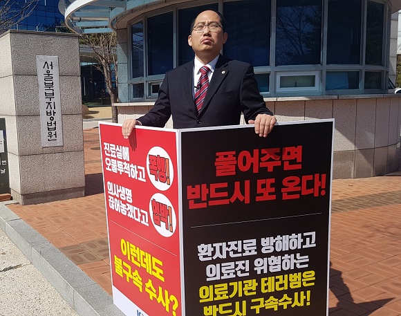 ´ëÇÑÀÇ»çÇùȸ(ÀÌÇÏ ÀÇÇù) ÃÖ´ëÁý ȸÀåÀº 22ÀÏ ¼­¿ï A ÀÇ·á±â°ü ¿À¹°Åõô Å×·¯»ç°Ç °¡ÇØÀÚÀÇ ±¸¼Ó¿µÀå ±â°¢ ÆÇ°á¿¡ ´ëÇÑ Ç×ÀÇÀÇ Ç¥½Ã·Î ¼­¿ïºÏºÎÁö¹ý ¾Õ¿¡¼­ 1ÀÎ ½ÃÀ§¿¡ ³ª¼¹´Ù.