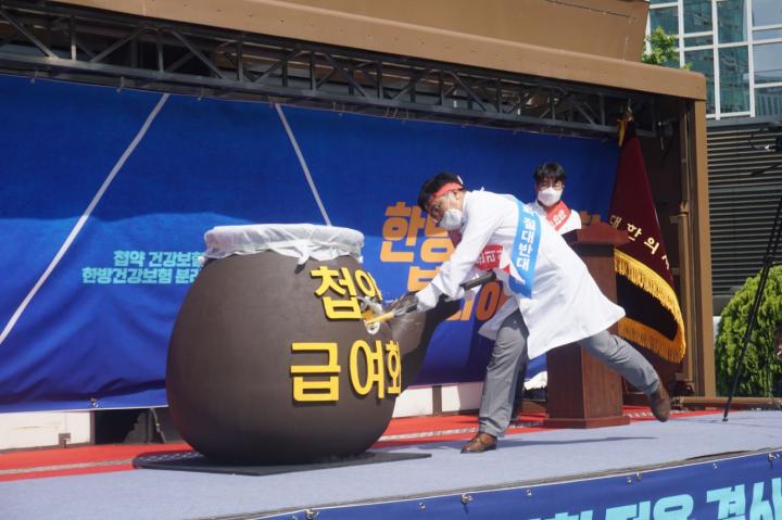 Áö³­ 6¿ù 28ÀÏ ÀÇÇùÀ̠ø¾à ±Þ¿©È­¸¦ ¹Ý´ëÇϴ °áÀÇ´ëȸ¸¦ °³ÃÖÇÑ °¡¿îµ¥ ¹ÚÁ¾Çõ ´ëº¯ÀÎÀÌ ÅÁ¾à±â¸¦ ¸ÁÄ¡·Î ºÎ¼ö´Â ÆÛÆ÷¸Õ½º¸¦ ÅëÇØ Ã¸¾à±Þ¿©È­ ÀúÁö ÀÇÁö¸¦ ºÐ¸íÈ÷Çß´Ù.