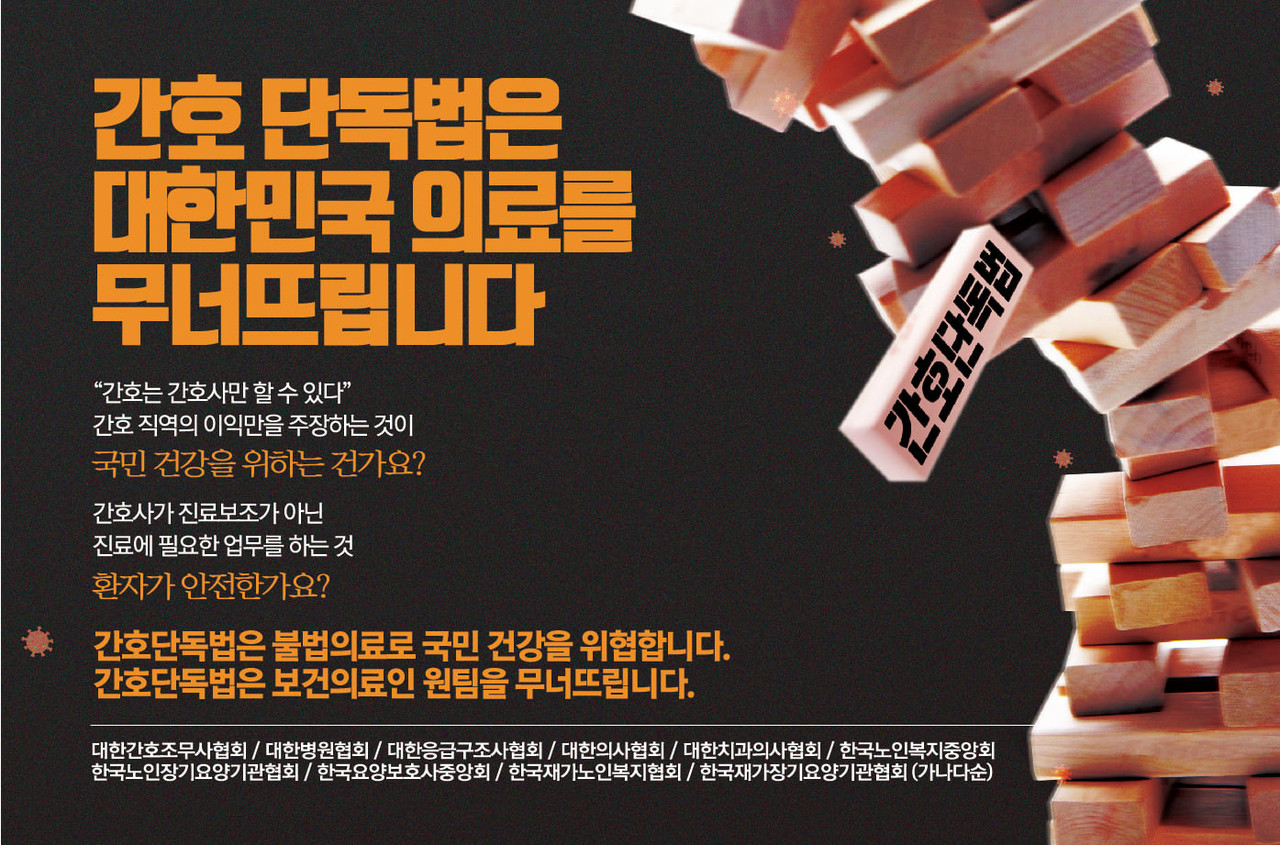°£È£¹ý Á¦Á¤À» ¹Ý´ëÇÏ´Â º¸°ÇÀÇ·á´ÜüµéÀÌ ¡®°£È£¹ýÀÌ ´ëÇѹα¹ ÀǷḦ ¹«³Ê¶ß¸°´Ù¡¯´Â ±¤°í¸¦ °ÔÀçÇÏÀÚ °£È£°è°¡ ¹Ý¹ßÇß´Ù.