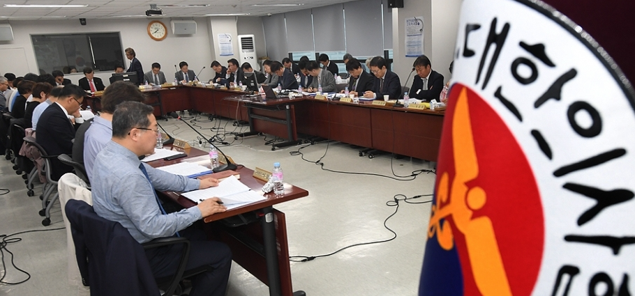 ȸÀÇ¿¡ Âü¼®ÇÑ ÀÇÇù ÀÓ¿øµéÀº Çù»ó Âü¿© ¿©ºÎ¸¦ ³õ°í °Ý·ÐÀ» ¹ú¿´´Ù.