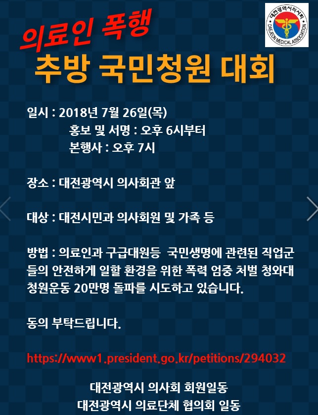 ´ëÀü½ÃÀÇ»çȸ, 26ÀÏ 'ÀÇ·áÀÎ ÆøÇà Ãß¹æ ±¹¹Îû¿ø ´ëȸ' °³ÃÖ