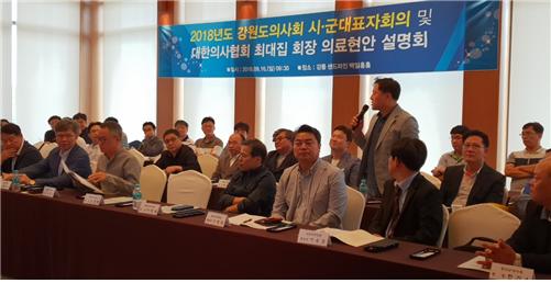 À̳¯ ¼³¸íȸ¿¡´Â °­¼®Å °­¿øµµÀÇ»çȸÀå, À̱Գ² °­¿øµµÀÇ»çȸ ´ëÀÇ¿øÈ¸ ÀÇÀåÀ» ºñ·ÔÇÑ ÀÓ¿øÁø°ú ȸ¿ø µî ¾à 50¿©¸íÀÌ Âü¼®Çß´Ù.