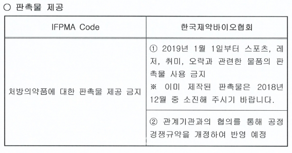 ±¹Á¦Á¦¾àÇùȸ¿¬ÇÕ(IFPMA)´Â Áö³­ 6¿ù À±¸®°æ¿µÁöħÀÎ ÀÚÀ²±Ô¾à(CP)¸¦ °³Á¤Çß´Ù. Àü¹®ÀǾàǰ ¿µ¾÷Ȱµ¿¿¡¼­ Ææ°ú ¸Þ¸ðÁö¸¦ Á¦¿ÜÇÑ ¸ðµç ÆÇÃ˹° Á¦°øÀ» ±ÝÁöÇÏ´Â °ÍÀÌ ÇÙ½ÉÀÌ´Ù.