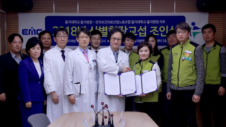À»Áöº´¿ø(º´¿øÀå À¯Å¹±Ù)°ú À»Áöº´¿øÁöºÎ(ÁöºÎÀå Â÷ºÀÀº)´Â 27ÀÏ ¿ÀÈÄ 2½Ã À»Áöº´¿ø ¸ðÀÚº¸°Ç¼¾ÅÍ 3Ãþ È¸Àǽǿ¡¼­ 2018³â »êº°ÇöÀå±³¼· Á¶ÀνÄÀ» °³ÃÖÇß´Ù. À̳¯ Á¶ÀνĿ¡´Â À¯Å¹±Ù º´¿øÀå°ú Â÷ºÀÀº ÁöºÎÀå, ÃÖÈñ¼± Àü±¹º¸°ÇÀÇ·á»ê¾÷³ëÁ¶ ¼­¿ïÁö¿ªº»ºÎÀåÀ» ºñ·ÔÇÑ ³ë»ç °ü°èÀÚ µî 10¿© ¸íÀÌ Âü¼®Çß´Ù.