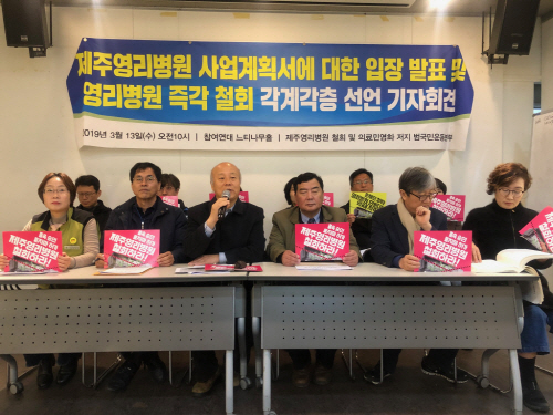 Á¦ÁÖ¿µ¸®º´¿ø öȸ ¹× ÀÇ·á¹Î¿µÈ­ ÀúÁö ¹ü±¹¹Î¿îµ¿º»ºÎ´Â Áö³­ 13ÀÏ Âü¿©¿¬´ë ´ÀƼ³ª¹«È¦¿¡¼­ ±âÀÚȸ°ßÀ» ¿­¾î ¹ÎÁÖÁÖÀÇ ¹× ÀÇ·á °ø°ø¼º¿¡ À§ÇùÀ» °¡ÇÏ´Â ³ìÁö±¹Á¦º´¿ø Çã°¡ öȸ¸¦ Ã˱¸Çß´Ù.