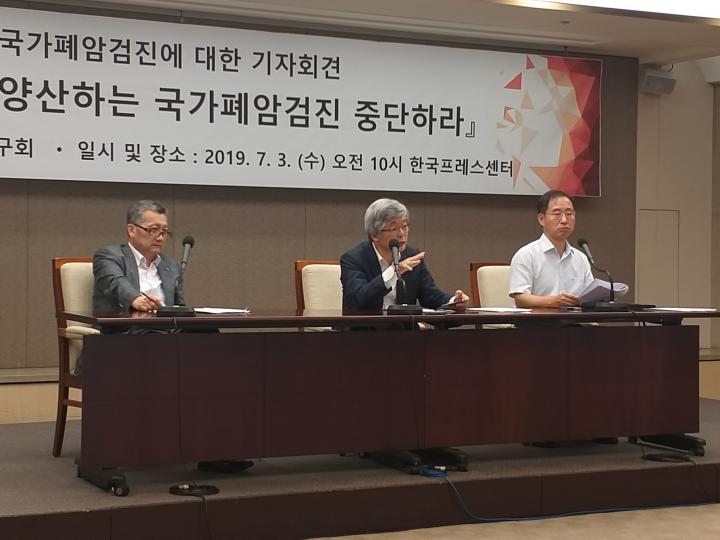 ÀÌÀçÈ£ ¼­¿ï¼º¸ðº´¿ø °¡Á¤ÀÇÇаú ±³¼ö´Â Æó¾Ï °ËÁø È®´ëÁ¤Ã¥¿¡ ´ëÇØ ¡âÁ¤Ã¥ Å¸´ç¼º¿¡ ´ëÇØ °ü·Ã ÇÐȸµé·ÎºÎÅÍ ÃæºÐÇÑ ÇмúÀû °ËÅä¿Í °ø½Ä ÀÎÁصµ °ÅÄ¡Áö ¾ÊÀº Á¡ ¡â±¹°¡ ½ÃÇàÁ¤Ã¥¿¡ ¾Õ¼­ ½ÃÇàÇÑ ½Ã¹ü»ç¾÷ÀÌ ºÒ°ú 2³âµ¿¾È ´ëÁ¶±ºµµ ¾øÀÌ ÁøÇàÇÑ, ÇмúÀû ±Ù°Å·Î ºÒÃæºÐÇÑ Á¡ ¡â ±¹¹Î¿¡°Ô °ËÁøÀ¸·ÎºÎÅÍ ¹ß»ýÇÒ ¼ö Àִ ºÎÀÛ¿ë°ú ÇÇÇØ¿¡ ´ëÇØ ¾Ë¸®Áö ¾ÊÀº Á¡ ¡â±¹°¡ Æó¾Ï °ËÁø Á¤Ã¥Àº °ø°ø¼ºÀÌ Ãë¾àÇÑ ±¹³» º¸°ÇÀÇ·áü°èÀÇ ¹®Á¦Á¡À» °í·ÁÇÏÁö ¾ÊÀº Á¤Ã¥À̶ó´Â Á¡ ¡â±¹°¡ Æó¾Ï °ËÁø È®´ëÁ¤Ã¥Àº ±¹³»ÀÏÂ÷ÀÇ·á »óȲÀ» ¾î·Æ°Ô ¸¸µé °¡´É¼ºÀÌ ³ô´Ù´Â Á¡ µîÀÇ ÀÌÀ¯¸¦ Á¾ÇÕÇØ ºñÆÇÇß´Ù.