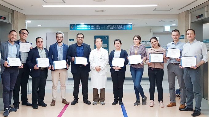 Á¾¾ç Áø´Ü ¹× Ä¡·áÈ¿°ú¸¦ ÀÎÁ¤¹ÞÀ¸¸ç ¼¼°èÀûÀ¸·Î Ȱ¿ëµÇ°í ÀÖ´Â ³»½Ã°æÃÊÀ½ÆÄ°Ë»ç(EUS, endoscopic ultrasonography)ÀÇ Àü¹®±³À°À» ¹Þ±â À§ÇØ °¢±¹ ÀÇ»çµéÀÌ ¼¿ï¾Æ»êº´¿øÀ» ã¾Ò´Ù.