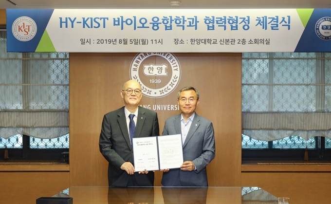 ÇѾç´ëÇб³´Â 5ÀÏ ¼­¿ï ¼ºµ¿±¸ ¼­¿ïÄ·ÆÛ½º¿¡¼­ Çѱ¹°úÇбâ¼ú¿¬±¸¿ø°ú ÇÔ²² ´ëÇпø °úÁ¤ÀÎ ¡®ÇѾç´ë-KIST ¹ÙÀÌ¿ÀÀ¶ÇÕÇаú¡¯ °³¼³À» À§ÇÑ Çù¾àÀ» ü°áÇß´Ù.